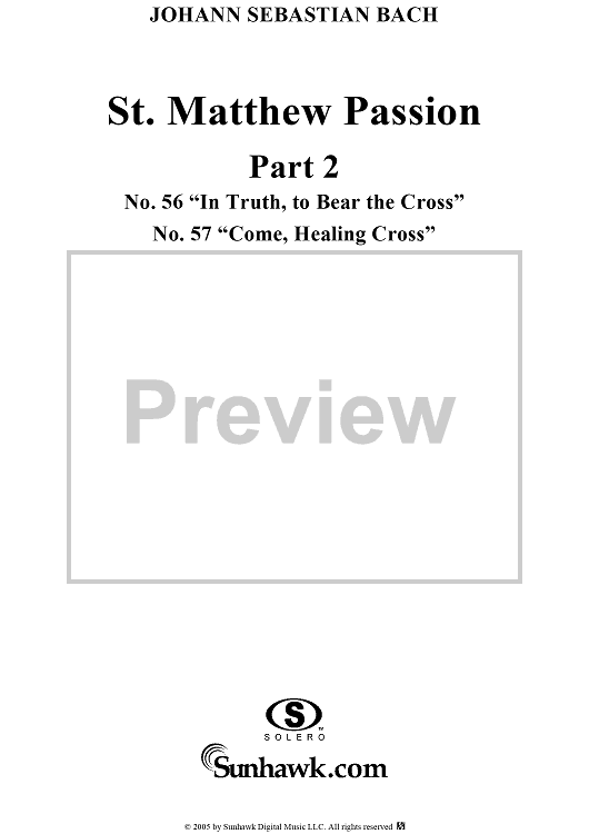 "St. Matthew Passion: Part II, Nos. 56-57, "In Truth, to Bear the Cross", "Come, Healing Cross"" Sheet Music by Johann Sebastian Bach