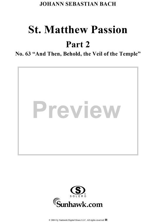 "St. Matthew Passion: Part II, Nos. 63a, 63b, 63c, "And Then, Behold, the Viel of the Temple"" Sheet Music by Johann Sebastian Bach