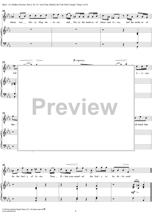 Digital Sheet Music for St. Matthew Passion: Part II, Nos. 63a, 63b, 63c, "And Then, Behold, the Viel of the Temple" by Johann Sebastian Bach scored for Voice/Piano; id:305080