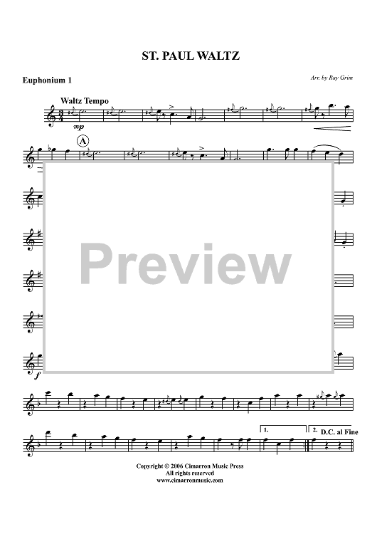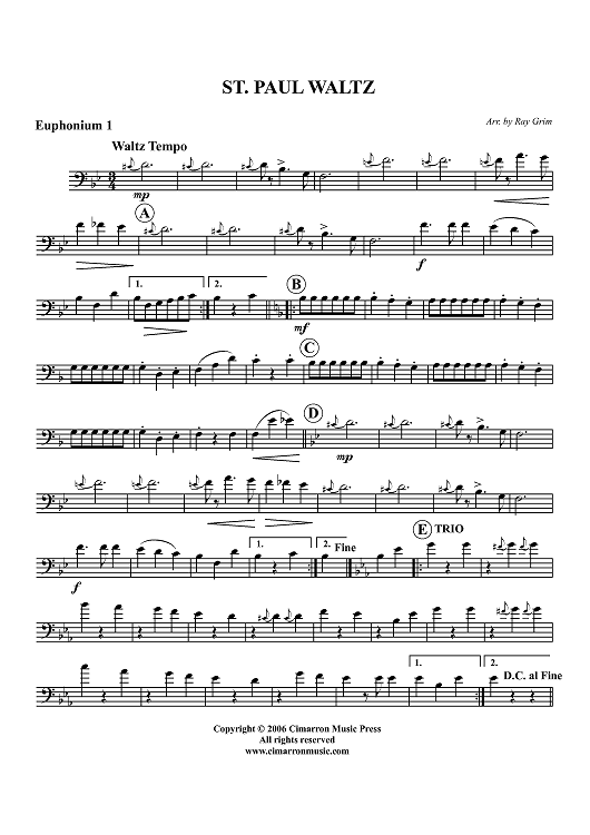 Digital Sheet Music for St. Paul Waltz - Euphonium 1 BC/TC by Ray Grim scored for Tuba Quartet; id:360582