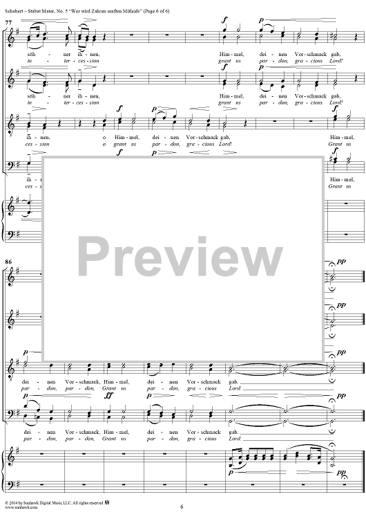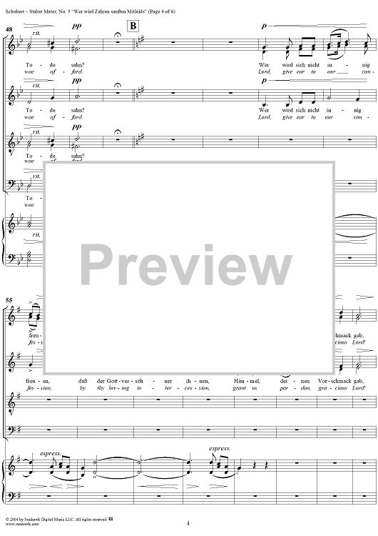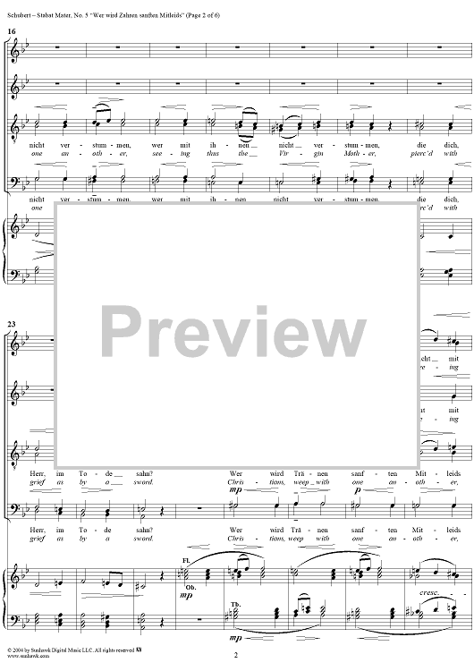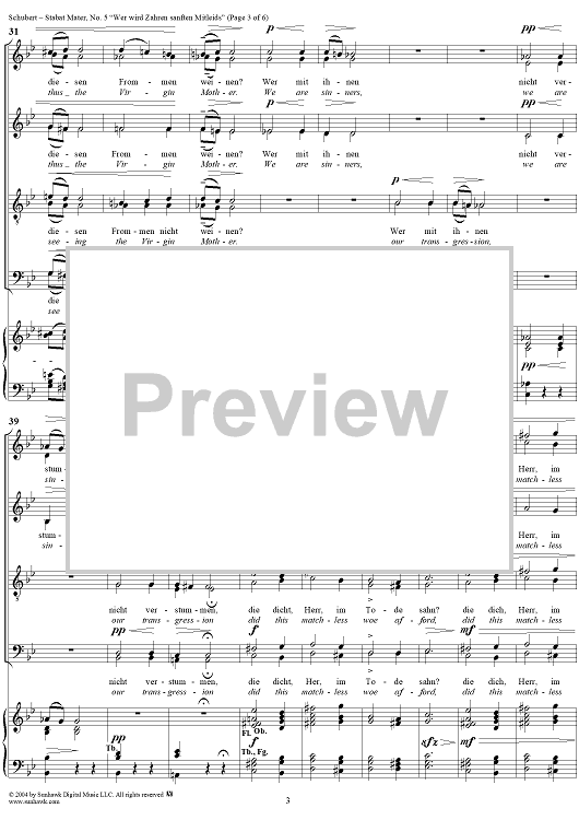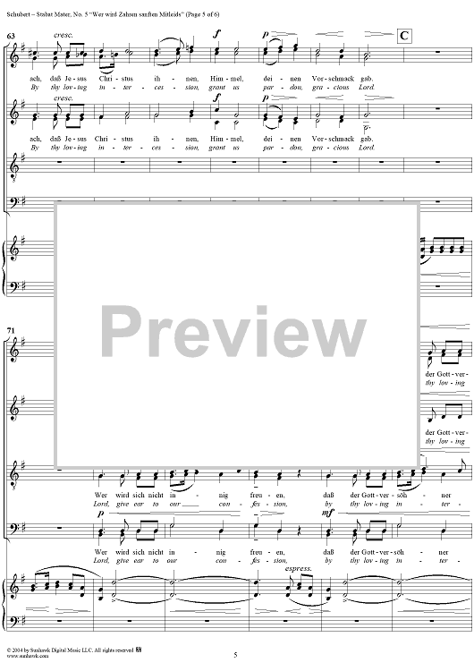 Digital Sheet Music for Stabat Mater, D383, No. 5: "Wer wird Zähren sanften Mitleids" by Franz Schubert scored for Four-part Mixed Chorus/Piano; id:304462
