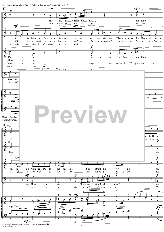 Digital Sheet Music for Stabat Mater, D383, No. 7: "Erben sollen sie am Throne" by Franz Schubert scored for Four-part Mixed Chorus/Piano; id:304464