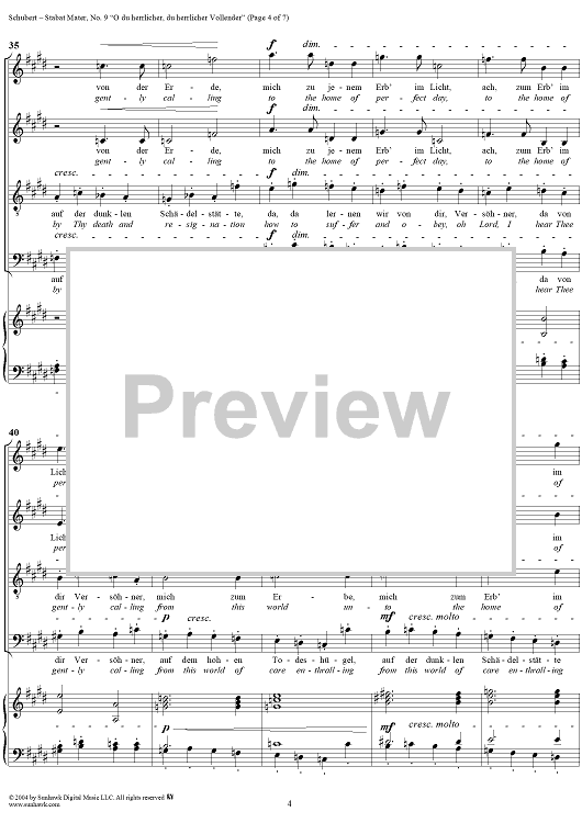 Digital Sheet Music for Stabat Mater, D383, No. 9: "O du herrlicher, du herrlicher Vollender" by Franz Schubert scored for Four-part Mixed Chorus/Piano; id:304466