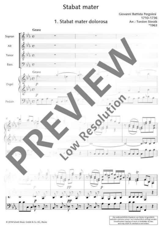 Digital Sheet Music for Stabat Mater - Organ Score by Giovanni Battista Pergolesi, Torsten Sterzik scored for Soloists (sa), Mixed Choir (satb) And Organ; id:493359