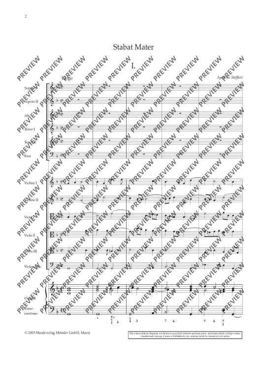 Digital Sheet Music for Stabat Mater - Score by Agostino Steffani scored for Soloists (atb), Mixed Choir (ssattb), Strings And Basso Continuo; id:499502