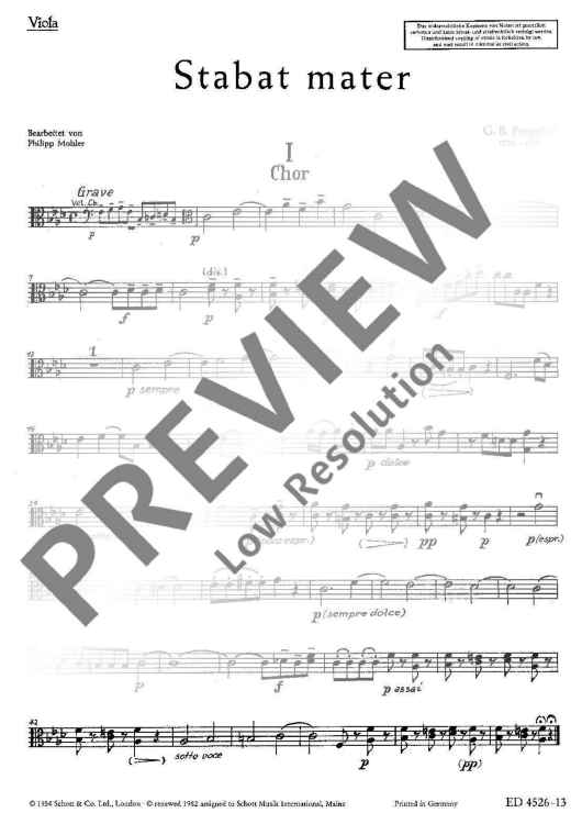 Digital Sheet Music for Stabat Mater - Viola by Giovanni Battista Pergolesi, Philipp Mohler scored for Female Choir (sa) With Soloists (sa), String Orchestra And Harpsichord (organ); id:473195