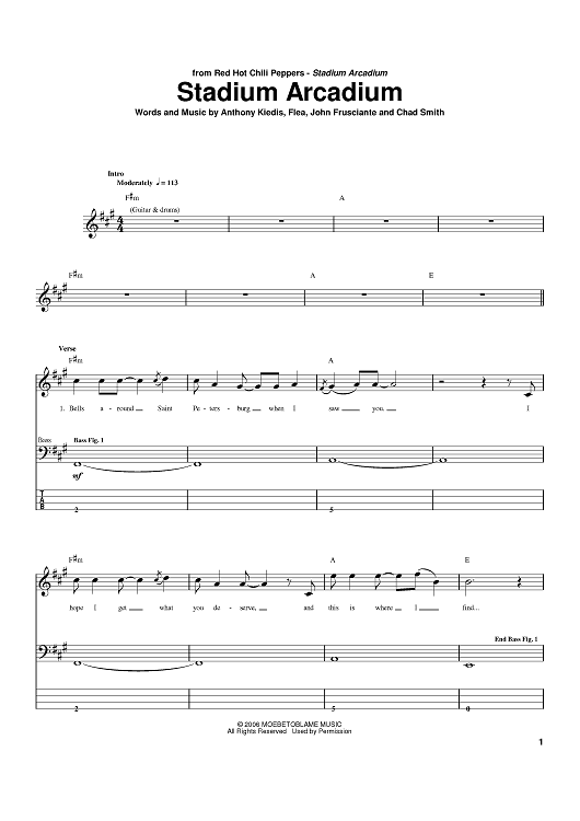 Digital Sheet Music for Stadium Arcadium by Flea, John Frusciante, Anthony Kiedis, Red Hot Chili Peppers, Chad Smith scored for Bass Tab; id:392002