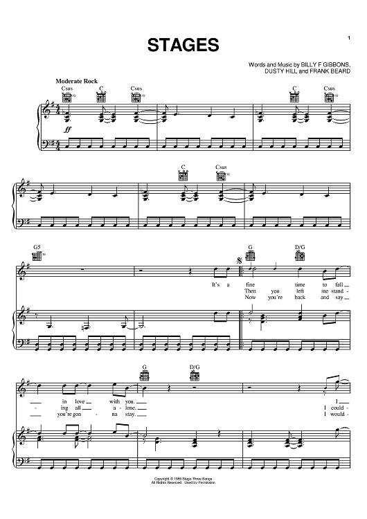 Digital Sheet Music for Stages by Billy Gibbons, Dusty Hill, Frank Beard, ZZ Top scored for Piano/Vocal/Chords; id:371038