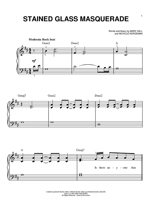Digital Sheet Music for Stained Glass Masquerade by Mark Hall, Nichole Nordeman, Casting Crowns scored for Easy Piano; id:390612