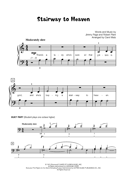 Digital Sheet Music for Stairway To Heaven by Jimmy Page, Carol Matz, Robert Plant scored for Piano; id:451486