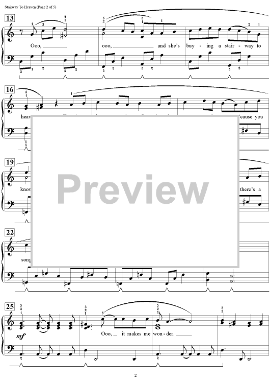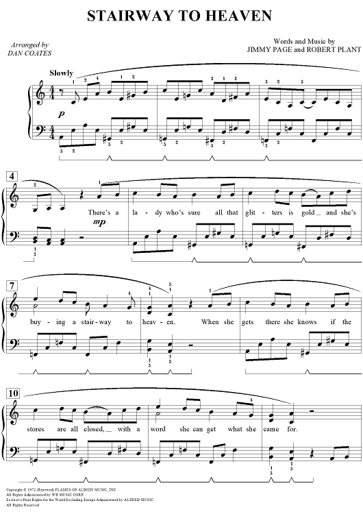 Digital Sheet Music for Stairway To Heaven by Dan Coates, Jimmy Page, Robert Plant scored for Piano; id:462603