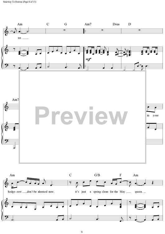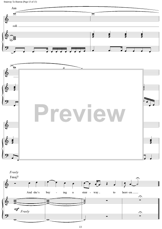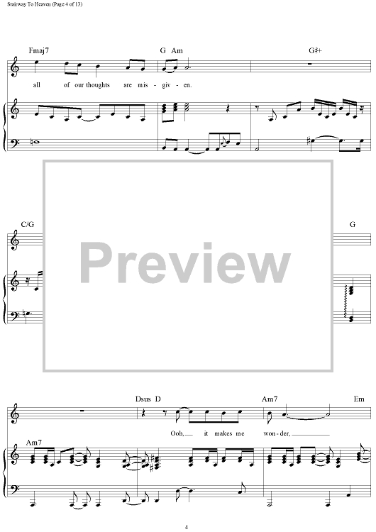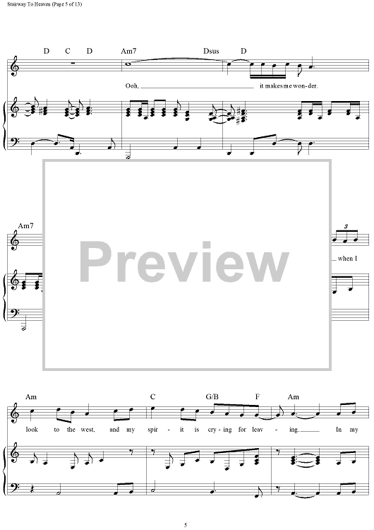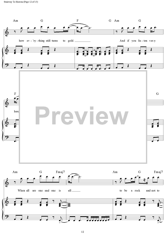 Digital Sheet Music for Stairway to Heaven by Jimmy Page, Led Zeppelin, Robert Plant scored for Piano/Vocal/Chords; id:95957