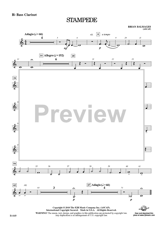 Digital Sheet Music for Stampede - Bb Bass Clarinet by Brian Balmages scored for Developing Band; id:415294