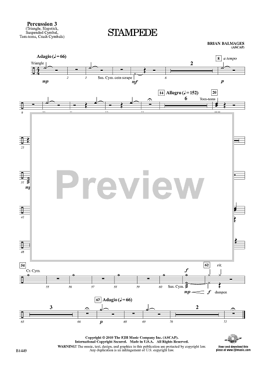 Digital Sheet Music for Stampede - Percussion 3 by Brian Balmages scored for Developing Band; id:415308