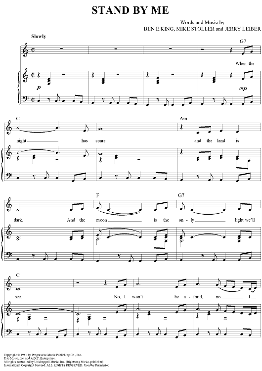 Digital Sheet Music for Stand By Me by Jerry Leiber, Mike Stoller, Ben E. King scored for Piano/Vocal/Chords; id:362968
