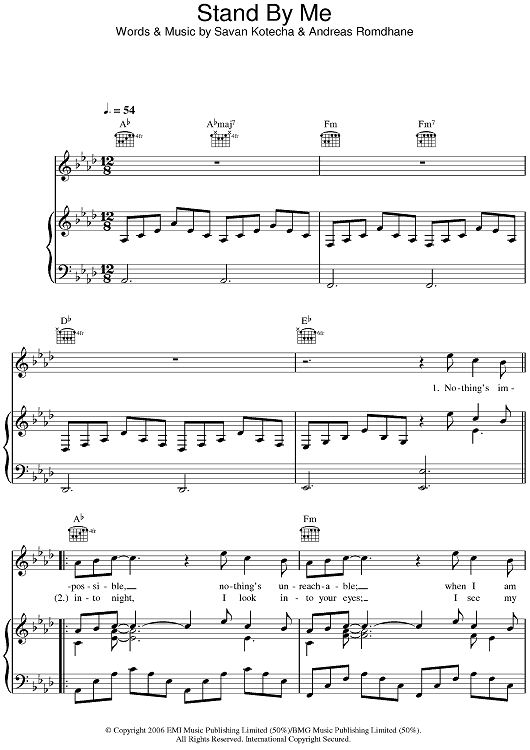 Digital Sheet Music for Stand By Me by Savan Kotecha, Shayne Ward, Quiz scored for Piano/Vocal/Chords; id:392156