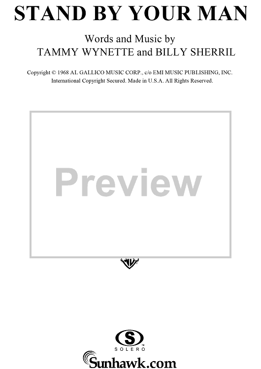 "Stand By Your Man" Sheet Music by Tammy Wynette