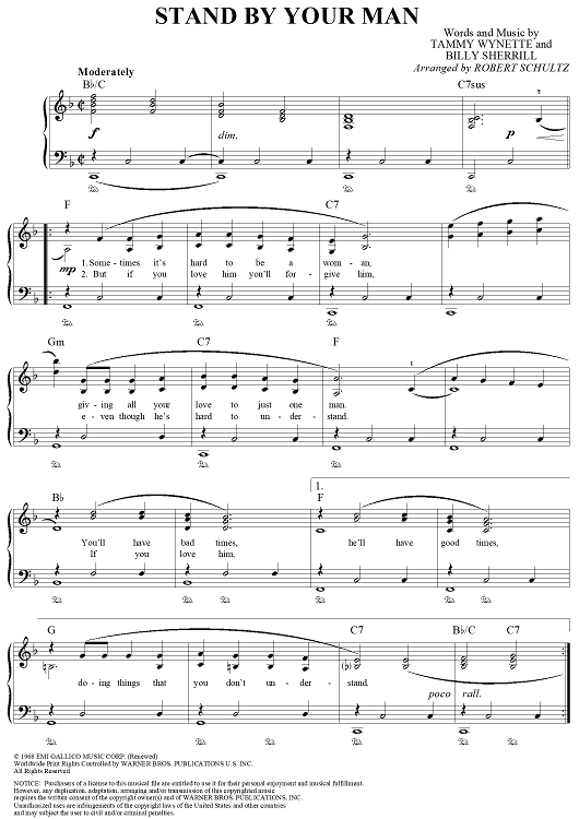 "Stand By Your Man" Sheet Music by Tammy Wynette