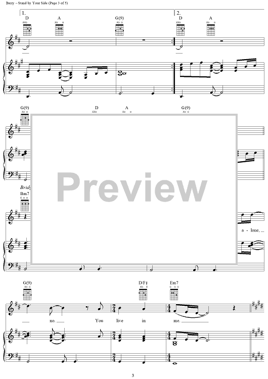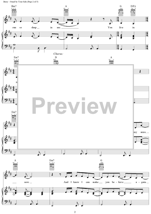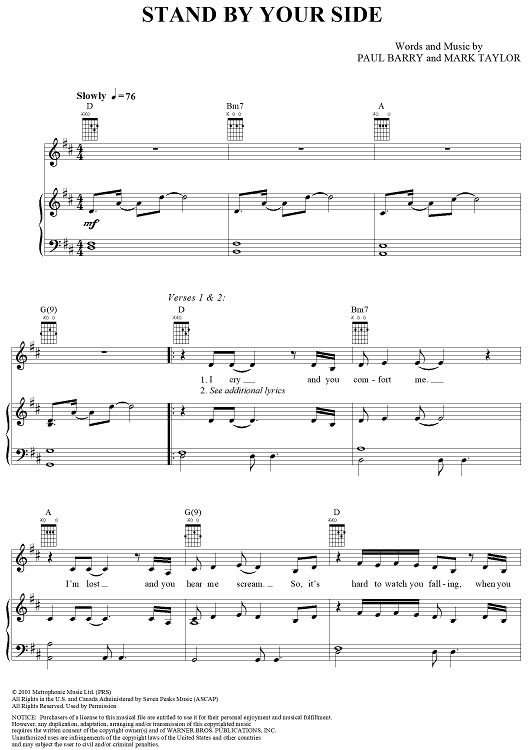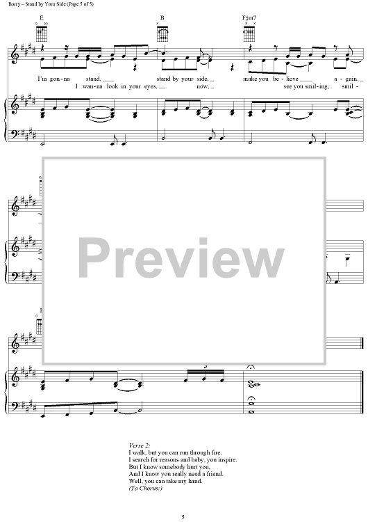 Digital Sheet Music for Stand by Your Side by Celine Dion, Mark Taylor, Paul Barry scored for Piano/Vocal/Chords; id:296484