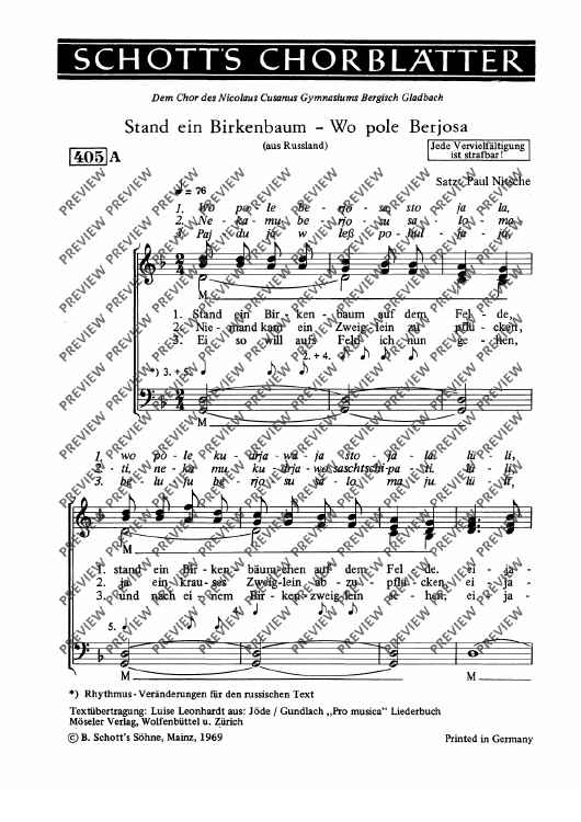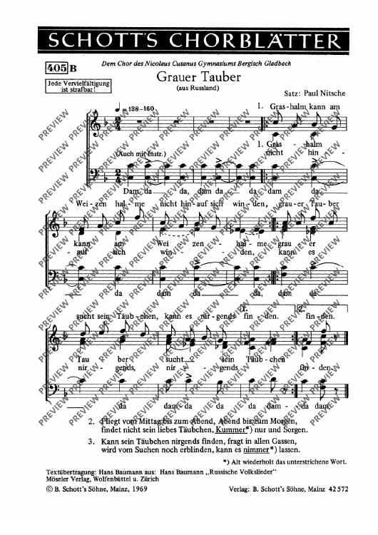 Digital Sheet Music for Stand ein Birkenbaum / Grauer Tauber - Choral Score by Paul Nitsche scored for Mixed Choir; id:479206
