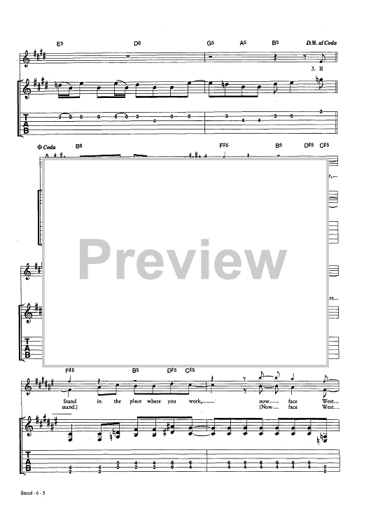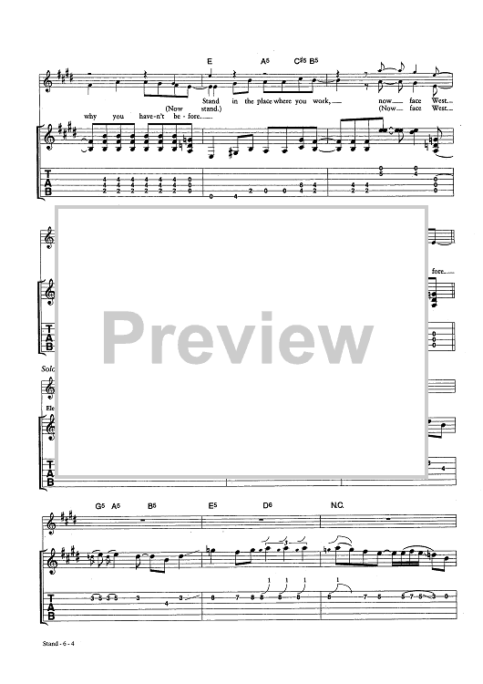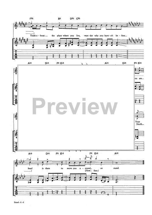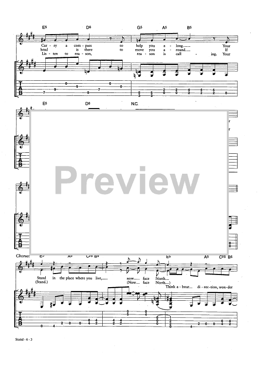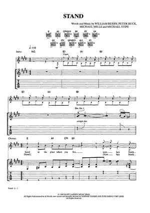 Digital Sheet Music for Stand by R.E.M., Michael Stipe, Peter Buck, Mike Mills, Bill Berry scored for Guitar Tab/Vocal/Chords; id:436998