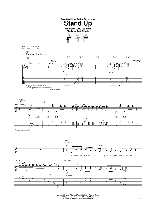 Digital Sheet Music for Stand Up by David Lee Roth, Brett Tuggle scored for Guitar Tab; id:385950