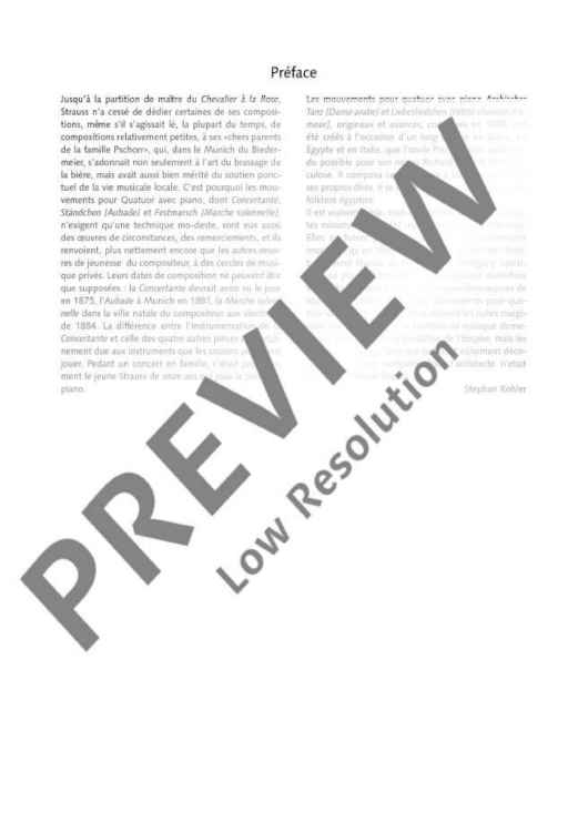 Digital Sheet Music for Ständchen · Festmarsch · Arabischer Tanz · Liebesliedchen · Concertante - Score and Parts by Richard Strauss scored for Piano Quartet (violin, Viola, Cello And Piano); id:473970