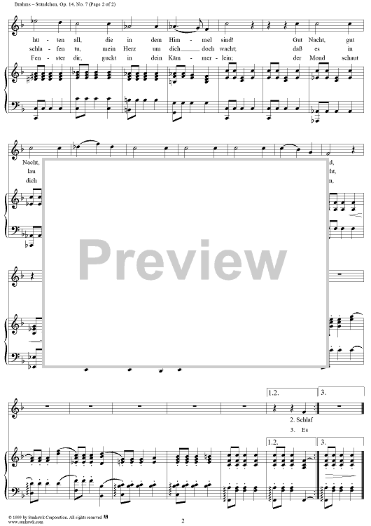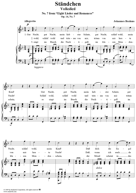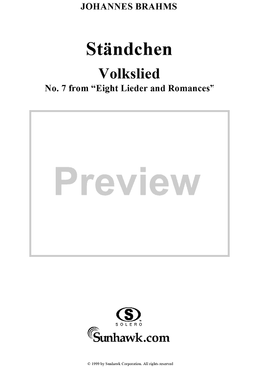 Digital Sheet Music for Ständchen by Johannes Brahms scored for Voice/Piano; id:118487