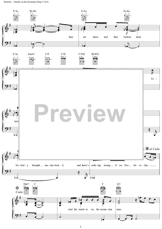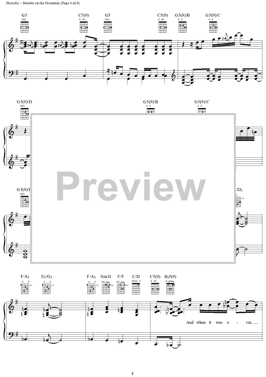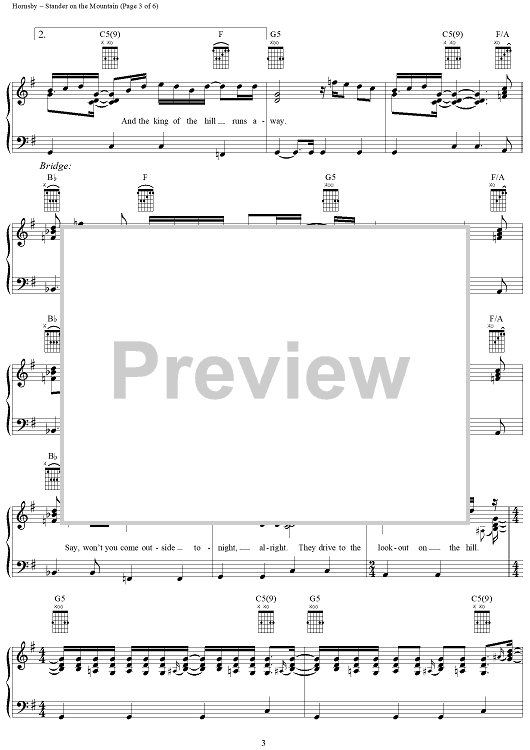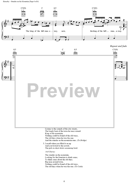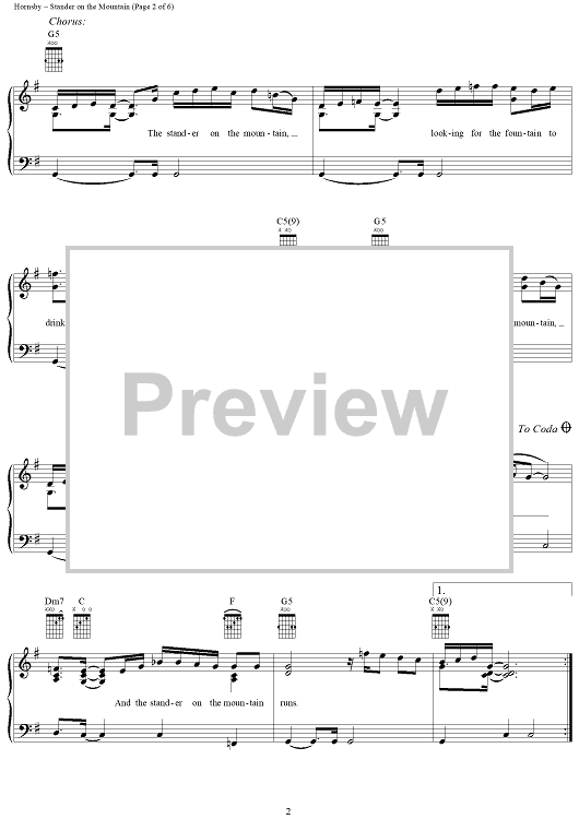 Digital Sheet Music for Stander on the Mountain by Bruce Hornsby scored for Piano/Vocal/Chords; id:266294
