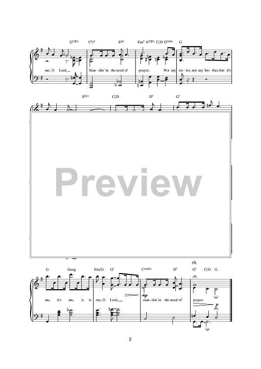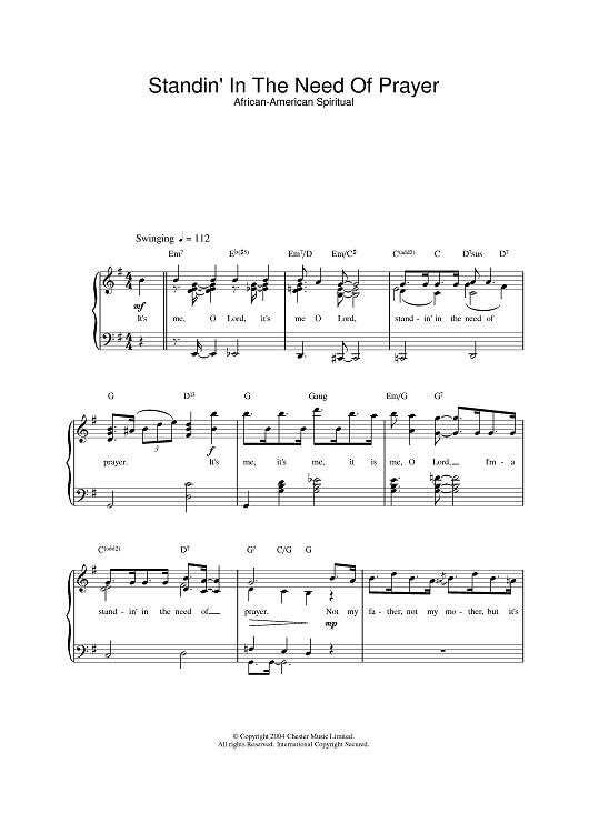 Digital Sheet Music for Standin' In The Need Of Prayer by scored for Piano/Vocal/Chords; id:378589