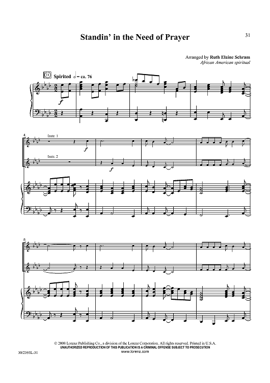 Digital Sheet Music for Standin’ in the Need of Prayer by Ruth Elaine Schram, African American Spiritual scored for Keyboard, C Instrument, Bb Instrument; id:433443
