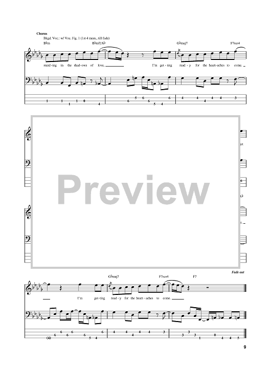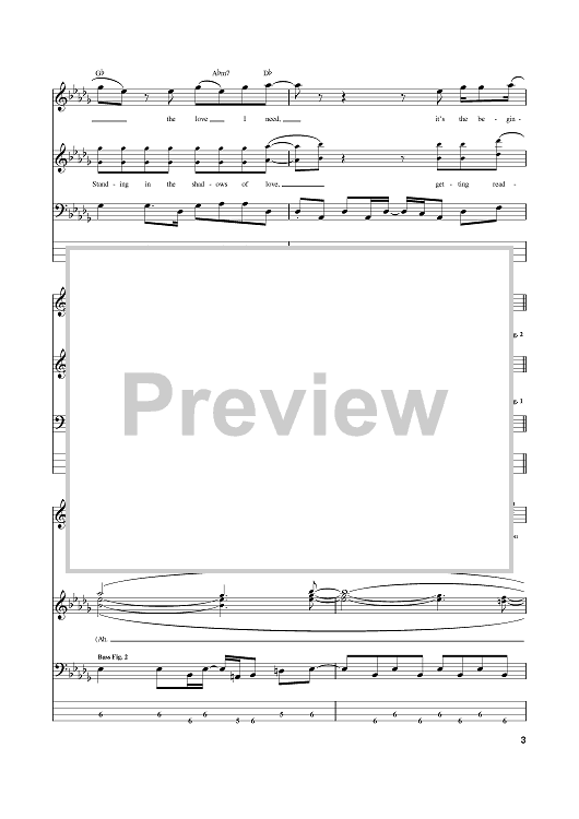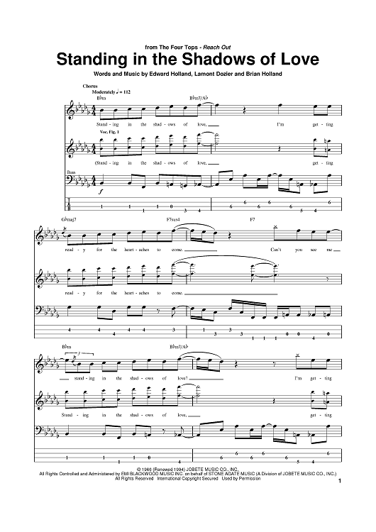 Digital Sheet Music for Standing In The Shadows Of Love by Four Tops, Lamont Dozier, Brian Holland, Eddie Holland scored for Bass Tab; id:384120