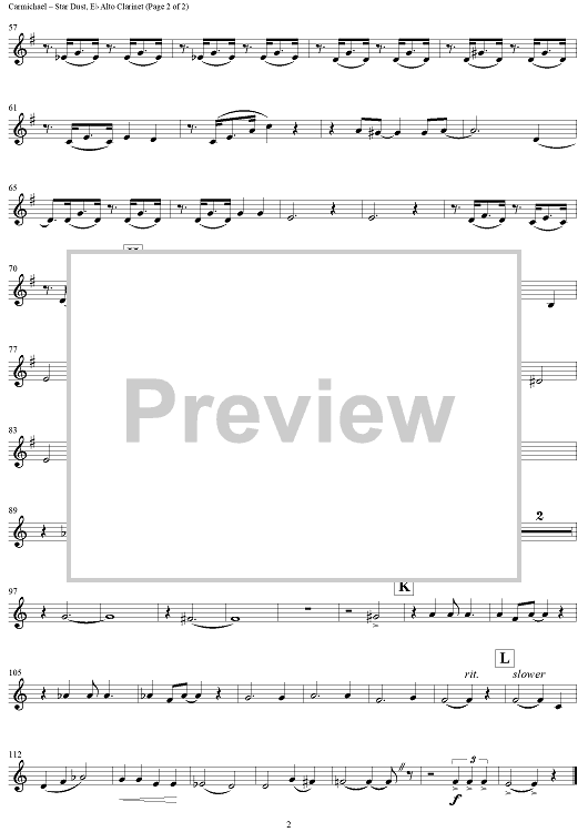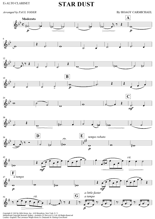 Digital Sheet Music for Star Dust - Alto Clarinet by Hoagy Carmichael, Paul Yoder scored for Concert Band; id:272897