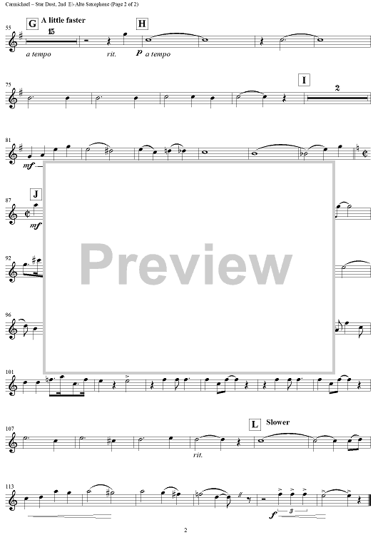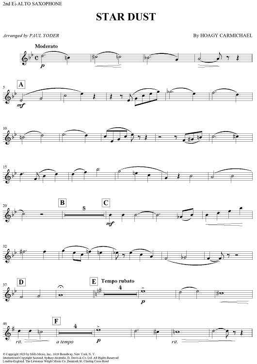 Digital Sheet Music for Star Dust - Alto Saxophone 2 by Hoagy Carmichael, Paul Yoder scored for Concert Band; id:272892