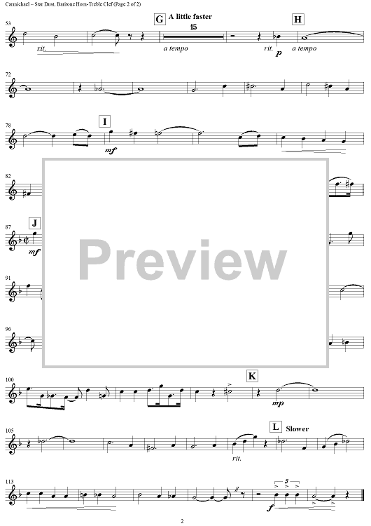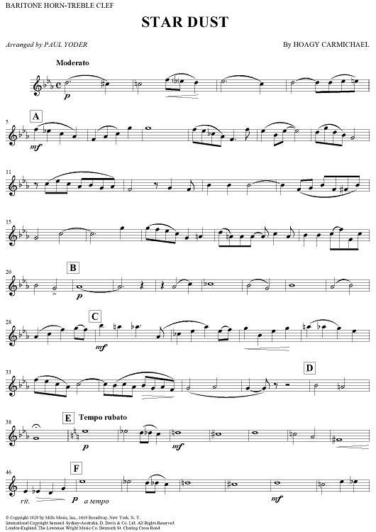 "Star Dust - Baritone TC" Sheet Music by Hoagy Carmichael