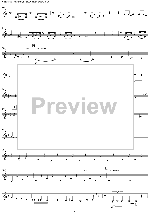 "Star Dust - Bass Clarinet" Sheet Music by Hoagy Carmichael