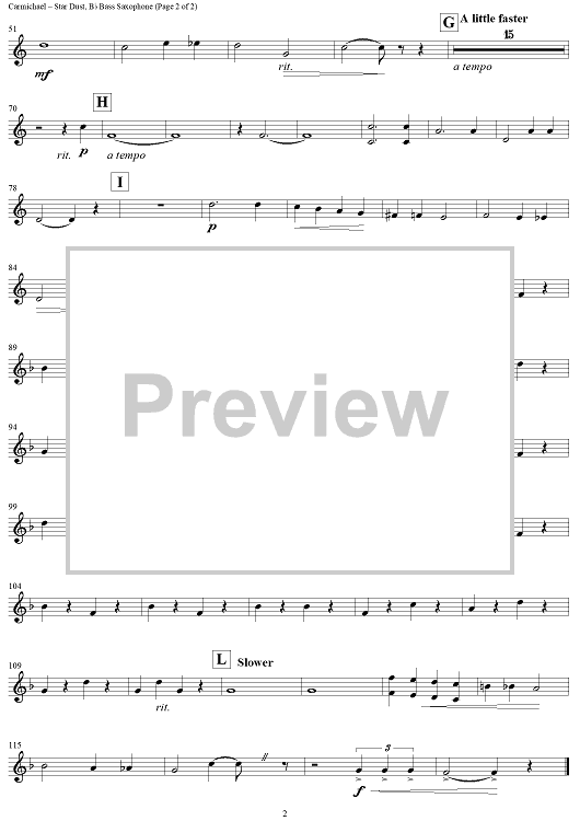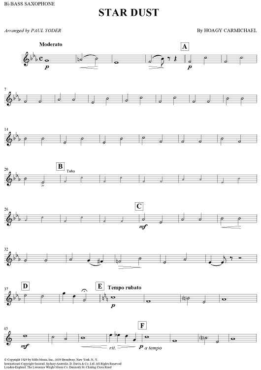 "Star Dust - Bass Saxophone" Sheet Music by Hoagy Carmichael