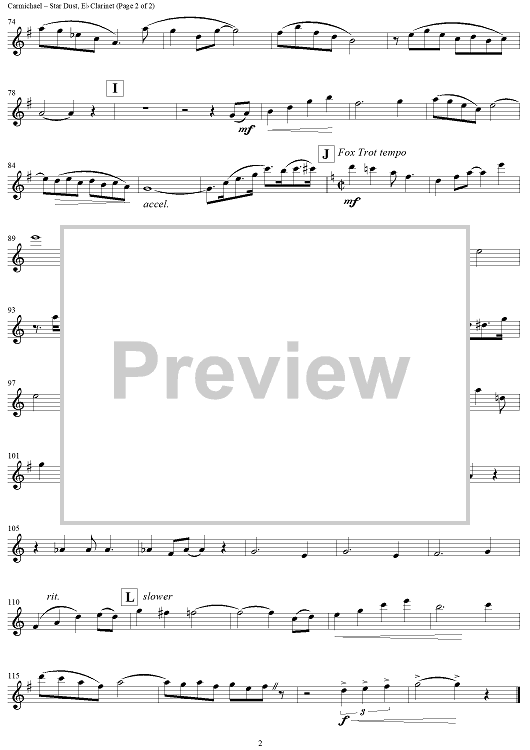 "Star Dust - E-flat Clarinet" Sheet Music by Hoagy Carmichael