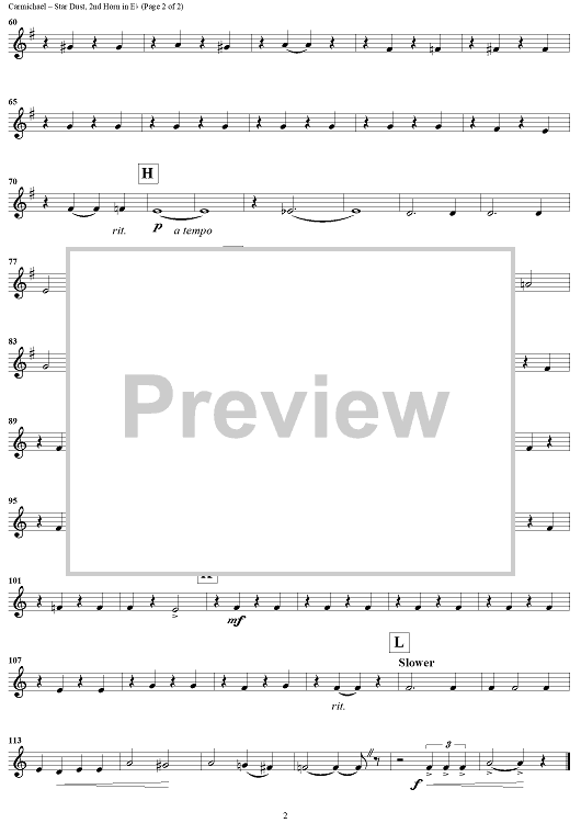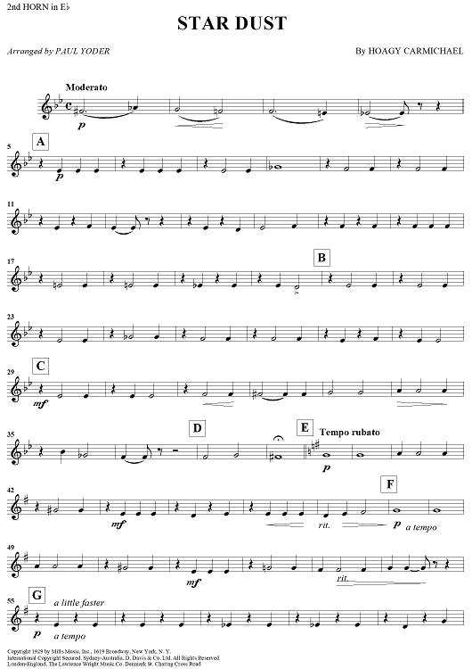 Digital Sheet Music for Star Dust - Horn 2 in E-flat by Hoagy Carmichael, Paul Yoder scored for Concert Band; id:272915