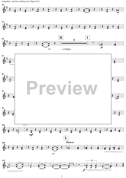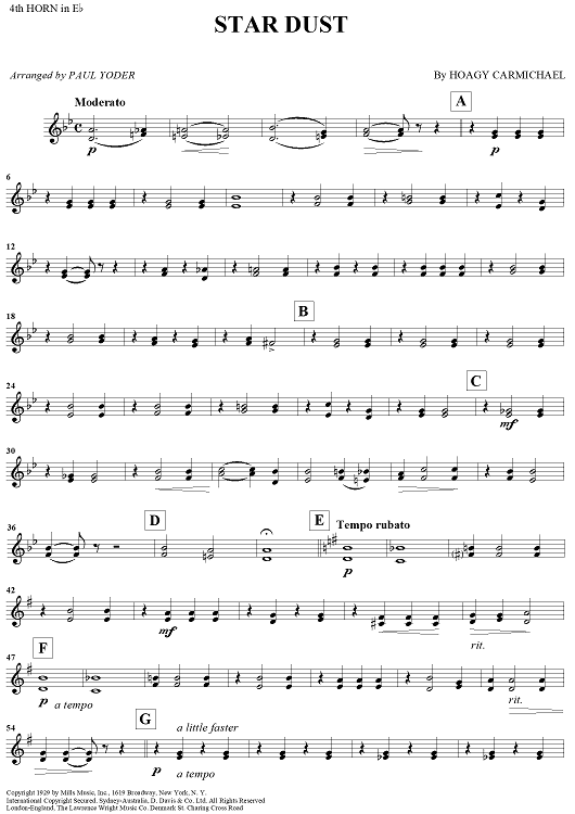 Digital Sheet Music for Star Dust - Horn 4 in E-flat by Hoagy Carmichael, Paul Yoder scored for Concert Band; id:272934
