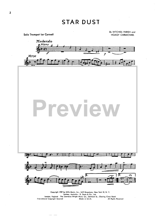 "Star Dust - Trumpet" Sheet Music by Mitchell Parish
