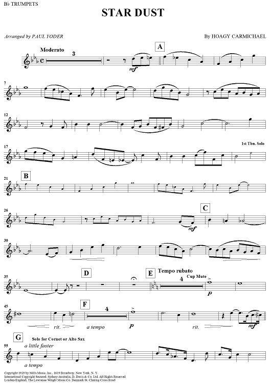 "Star Dust - Trumpets" Sheet Music by Hoagy Carmichael