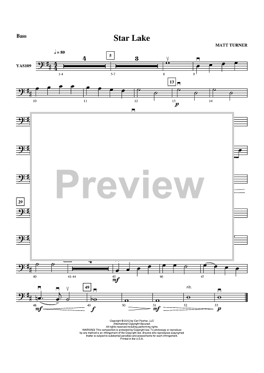 "Star Lake - Bass" Sheet Music by Matt Turner
