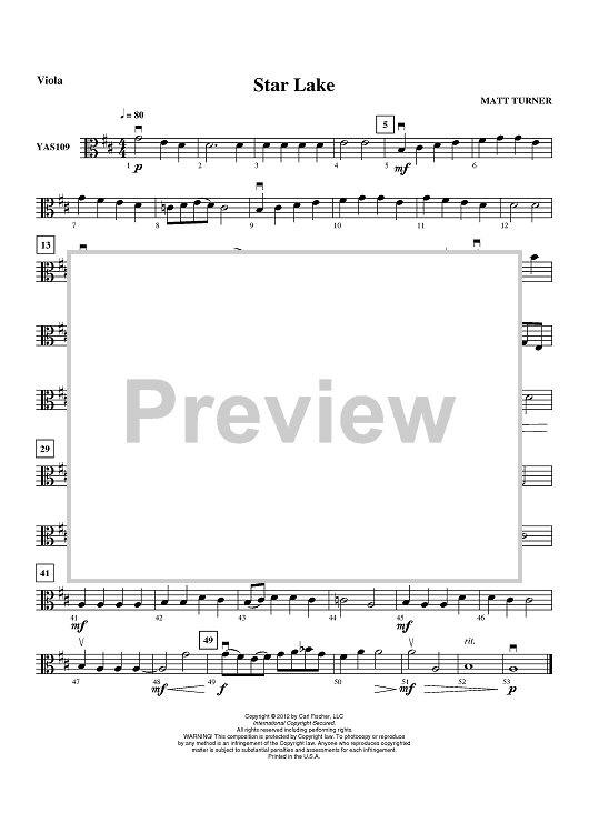 "Star Lake - Viola" Sheet Music by Matt Turner