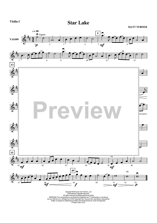 "Star Lake - Violin 1" Sheet Music by Matt Turner