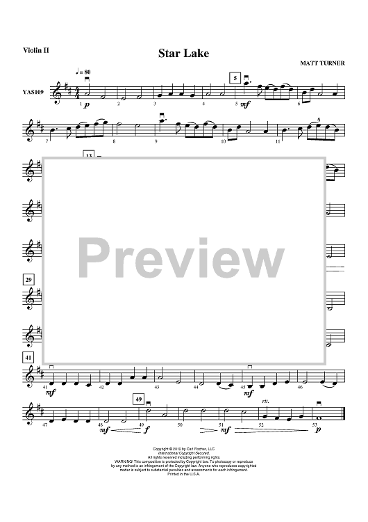 "Star Lake - Violin 2" Sheet Music by Matt Turner