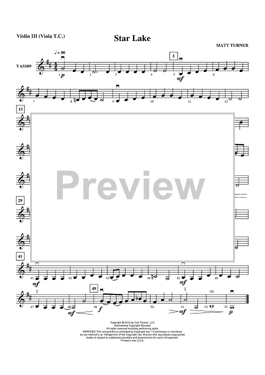 "Star Lake - Violin 3 (Viola T.C.)" Sheet Music by Matt Turner