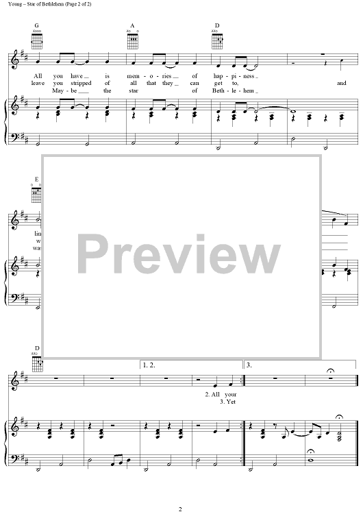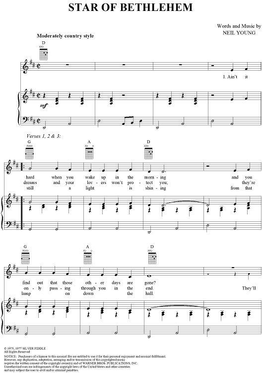 Digital Sheet Music for Star of Bethlehem by Neil Young scored for Piano/Vocal/Chords; id:262743