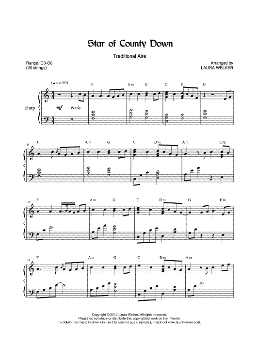 Digital Sheet Music for Star Of County Down by Various, Traditional, Laura Welker scored for Lever Harp; id:417964