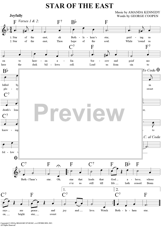 Digital Sheet Music for Star of the East by George Cooper, Amanda Kennedy scored for Lead Sheet; id:250152